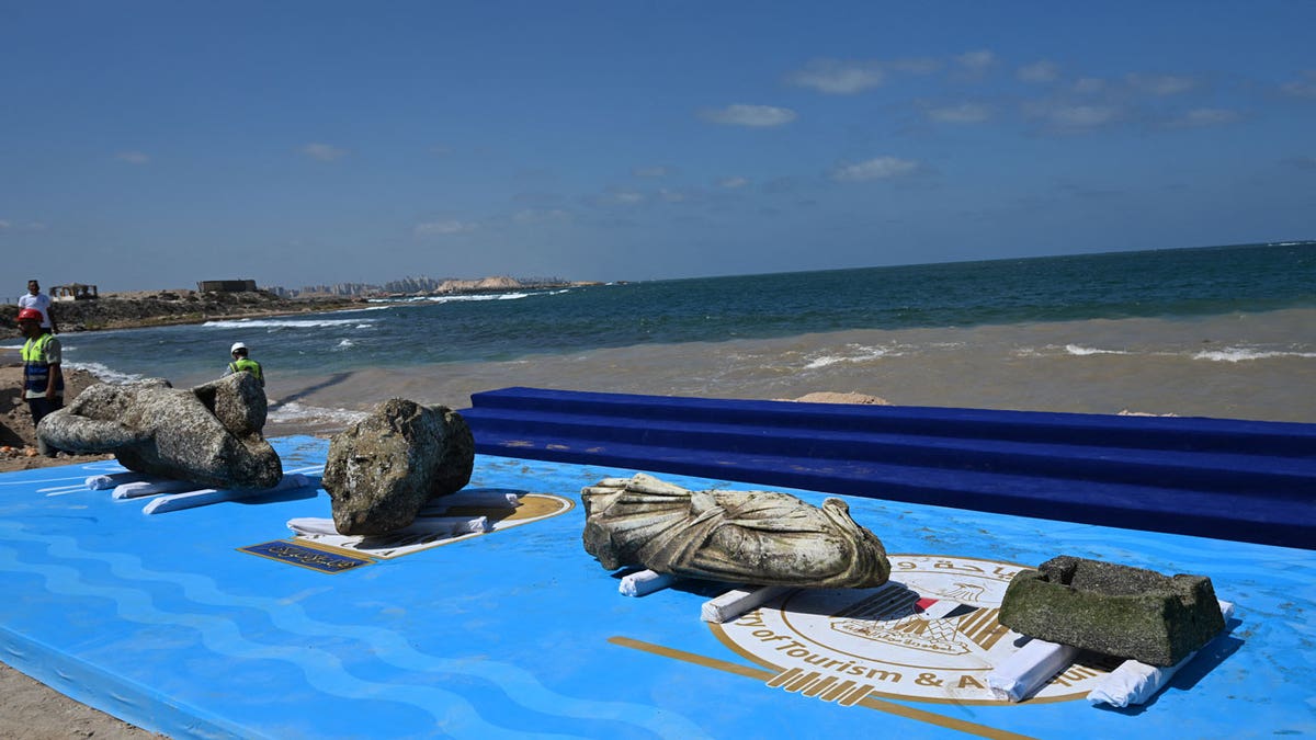 Archaeologists recently discovered ancient artifacts from a 2,000-year-old city believed to be an extension of Canopus in Alexandria, Egypt. (Khaled Desouki/AFP via Getty Images)
