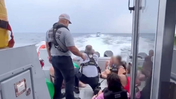 HomeTravelEight people rescued from sinking boat after running low on fuel in...